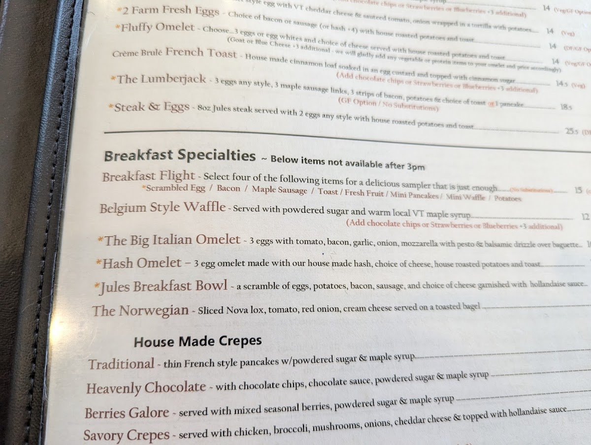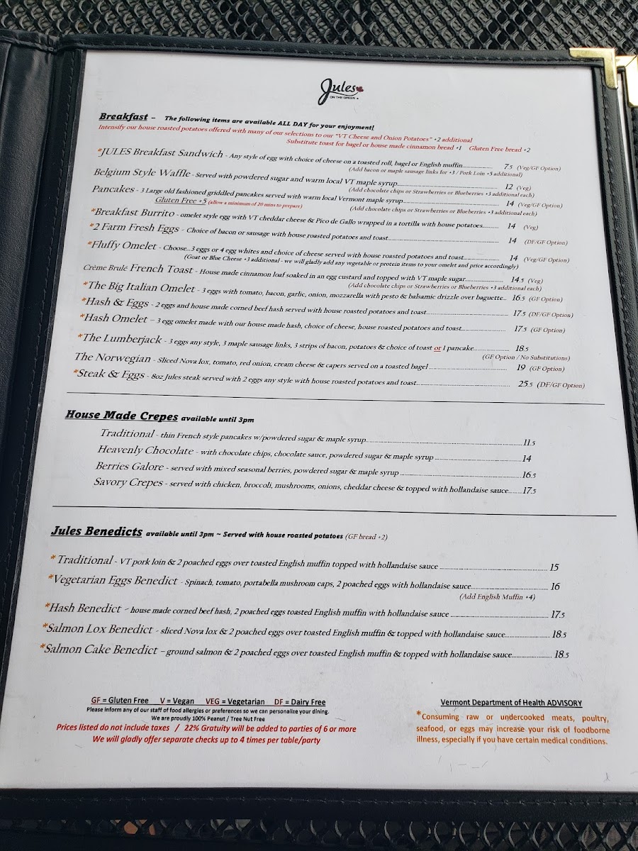 Welcome to JULES on the Green, a delightful culinary gem located at 1 Commonwealth Ave, Essex Junction, VT. This charming spot offers a truly inviting atmosphere, perfect for both family dinners and intimate gatherings. Guests rave about the extensive menu that showcases a blend of comforting classics and innovative dishes.